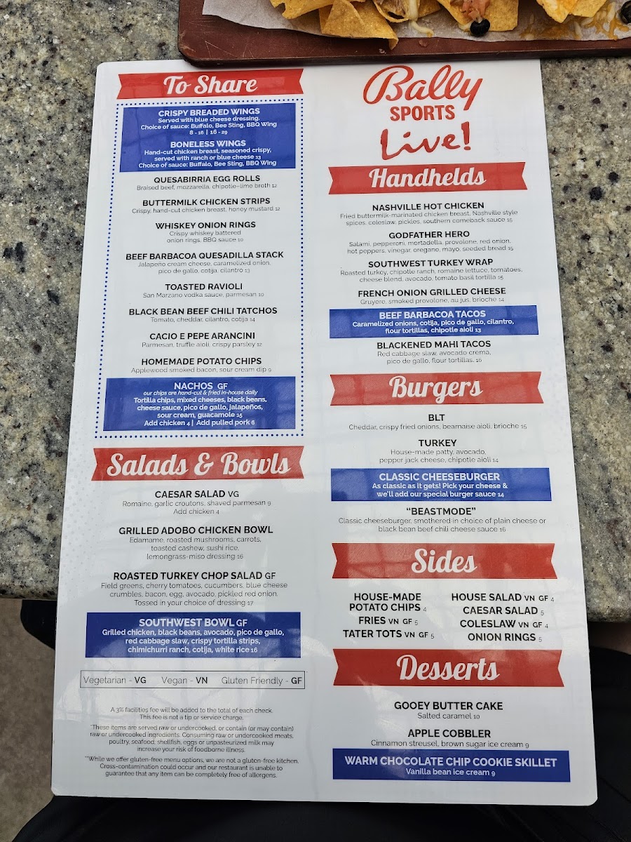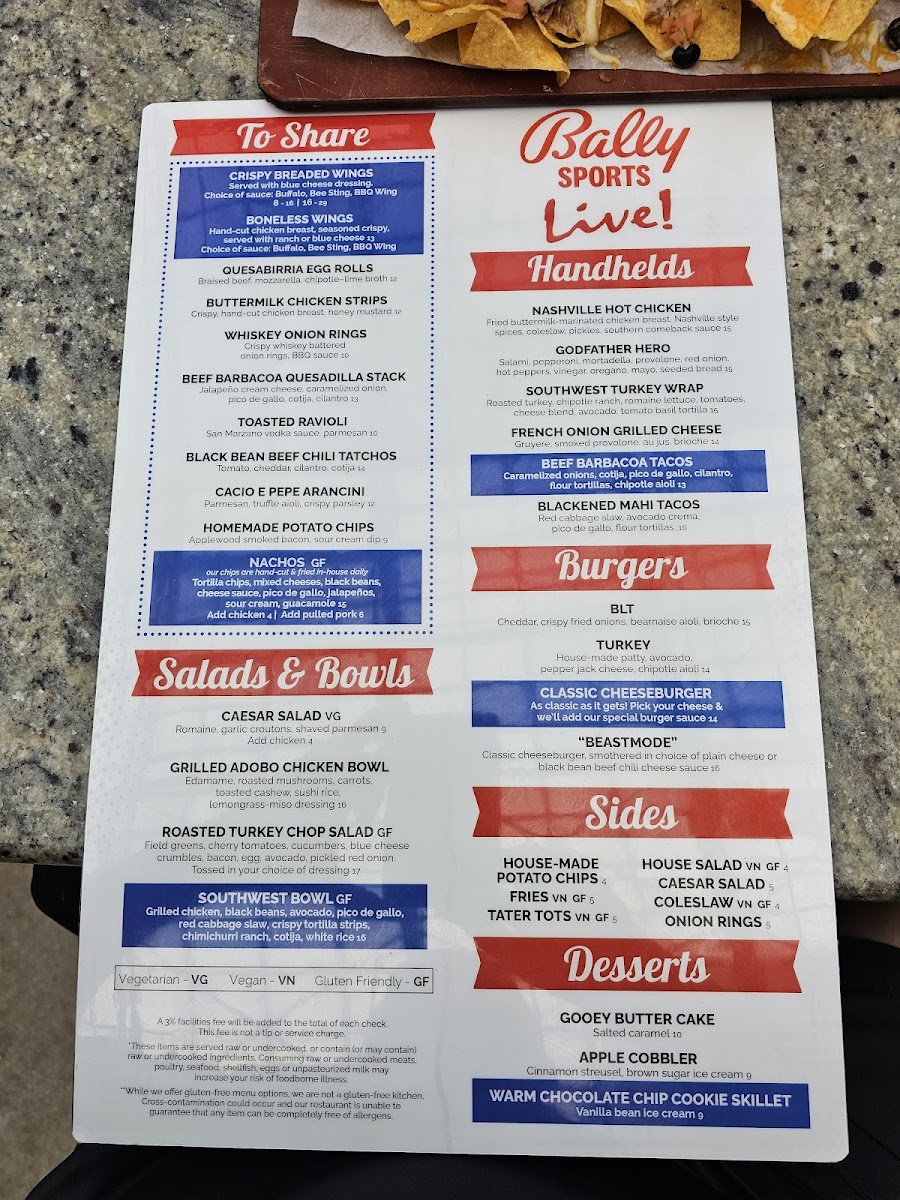 Diverse Offerings: From hearty bites to refreshing beverages, the menu is designed to satisfy sports fans and casual diners alike.